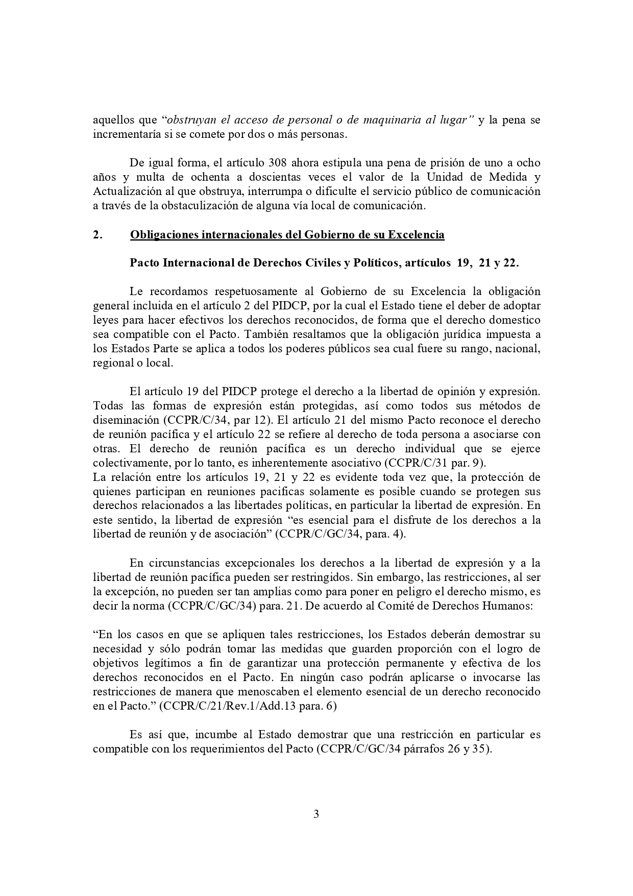 En la carta, los representantes del organismo manifiestan que el proyecto de Ley se sometió a discusión y debate por muy corto tiempo, hecho que impidió llevar a cabo consultas previas con la sociedad civil, expertos nacionales e internacionales.