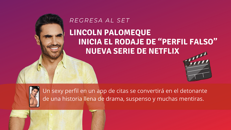 BOGOTÁ, COLOMBIA.- Regresa el set. El actor colombiano Lincoln Palomeque inició el rodaje de Perfil Falso, la nueva serie de Netflix hecha en Colombia. En esta historia, la atracción, que comienza a través de un sexy perfil creado por su protagonista en una aplicación de citas, se convertirá en un viaje para destapar todas las mentiras de alguien que dijo ser quien no era mientras nos adentramos en un intrincado laberinto de apariencias que engañan, sexo prohibido y poderes que matan.