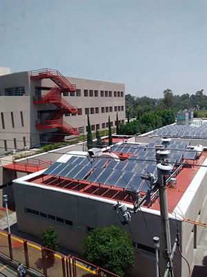 Foto tomada desde la estación Tezonco, Línea Dorada del Metro. Los edificios son el Hospital Dr. Belisario Domínguez.