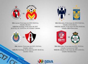 CIUDAD DE MÉXICO, 8 de mayo (AlMomentoMX).- La Federación Mexicana de Futbol anunció los horarios para los Cuartos de Final del Clausura 2017 en la Liga Mx. Monterrey y Tigres serán los encargados de iniciar la “Fiesta Grande” del futbol mexicano.