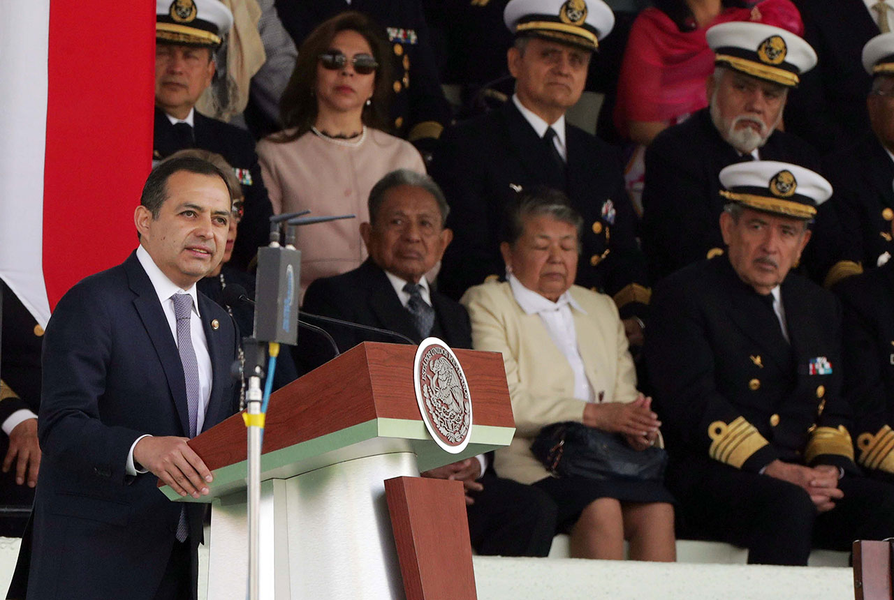 El presidente de la Mesa Directiva del Senado de la República, senador Ernesto Cordero Arroyo, asistió a la ceremonia del Día de la Bandera en el campo Militar Marte.