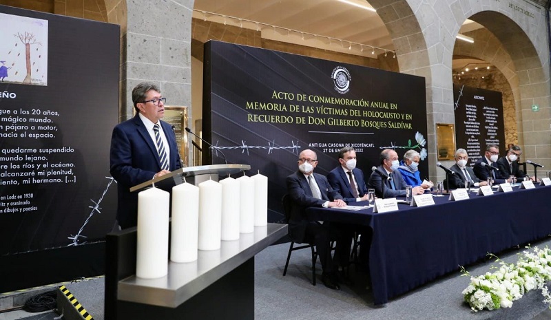 En el marco del Acto de Conmemoración en Recuerdo de las Víctimas del Holocausto, Monreal Ávila consideró necesario construir en el país un Estado de derecho sólido, en el que la justicia jamás se supedite a la política, y menos a caprichos y odios personales de caciques locales.