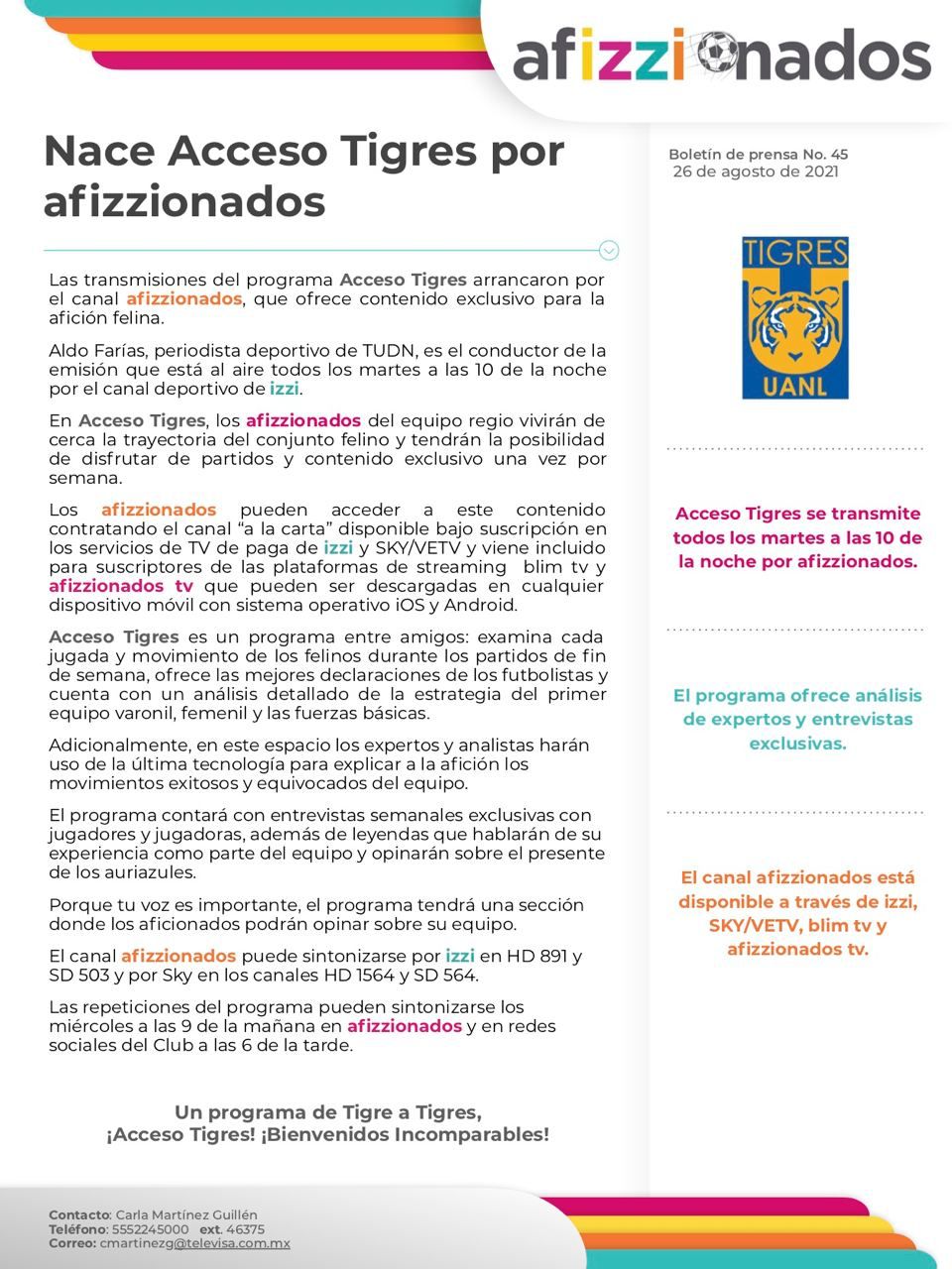 La oferta del canal afizzionados de izzi para los amantes del fútbol crece con el estreno de ‘Acceso Tigres’ que se suma al contenido que ofrecen a sus televidentes y seguidores de los equipos América, Chivas y Atlas.