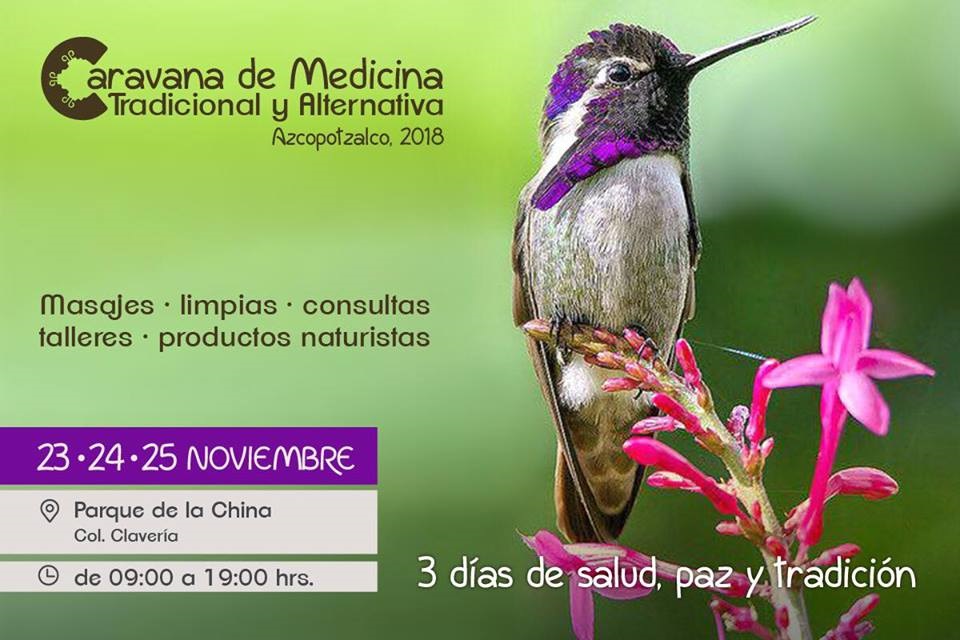 CIUDAD DE MÉXICO, 23 de noviembre (AlmomentoMX).- La Caravana de Medicina Tradicional y Alternativa se presenta los días 23-24-25 de Noviembre de 2018 en Parque de la China en Col. Claveria Alcaldia Azcapotzalco.