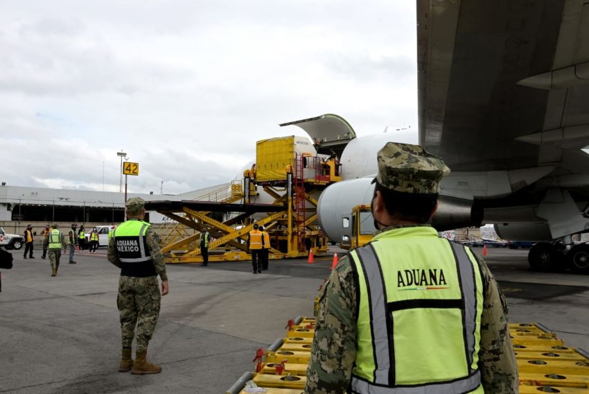 El lote llegó a la Terminal 1 del aeropuerto, donde fueron recibidas por el doctor Pedro Zenteno Santaella, director de Biológicos y Reactivos de México (Birmex).