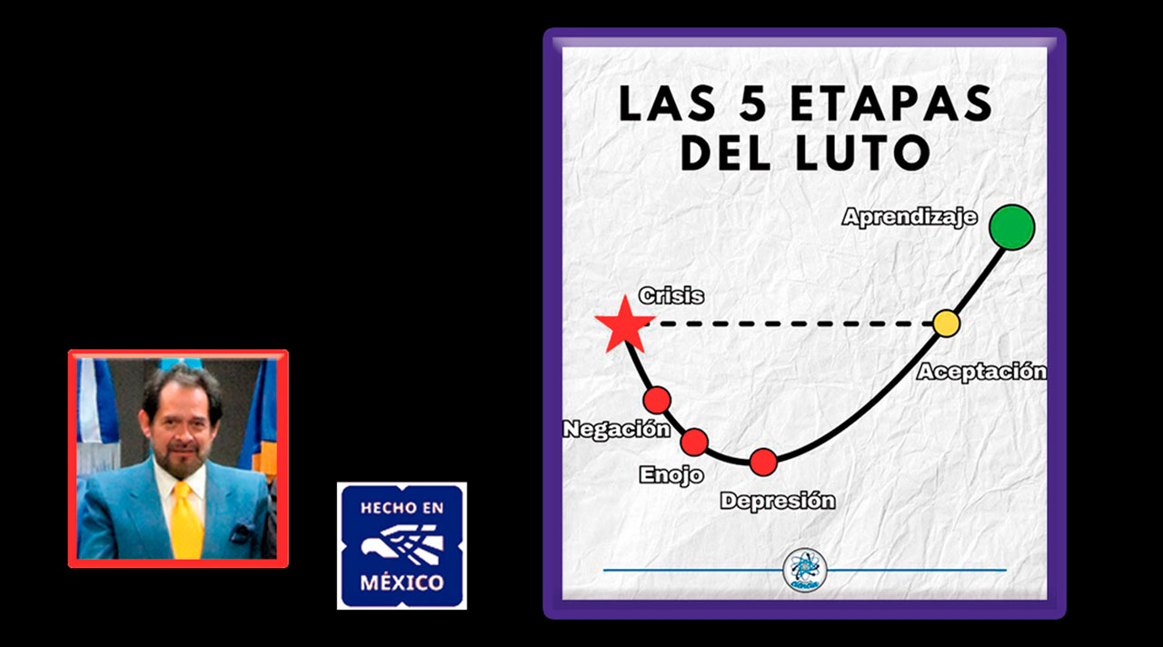NOTA: la etapa de luto donde se encuentra la oposición, no rebasa el punto de la Depresión, se regresa al Enojo, Negación y Crisis. Así viaja en ese péndulo todo el tiempo. Quizás, una parte del sector empresarial haya avanzado al punto de la “Aceptación” con presión para regresar o avanzar a los otros puntos. No aprenden que no aprenden.