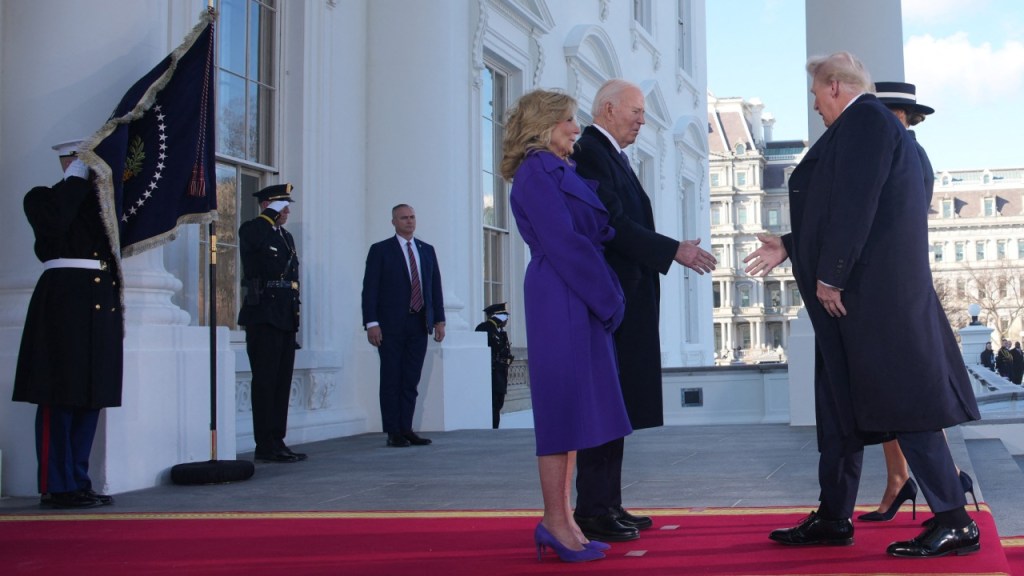 En respeto al protocolo, el presidente saliente de Estados Unidos, Joe Biden, y su esposa, Jill, recibieron este lunes por la mañana al presidente electo, Donald Trump, y a su esposa, Melania, en la Casa Blanca.