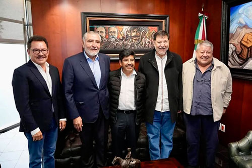En ella aparece acompañado por Adán Augusto López Hernández, Gerardo Fernández Noroña, Ignacio Mier y el que será —según todo indica— el próximo presidente de la Suprema Corte de Justicia de la Nación (SCJN), Hugo Aguilar Ortiz.