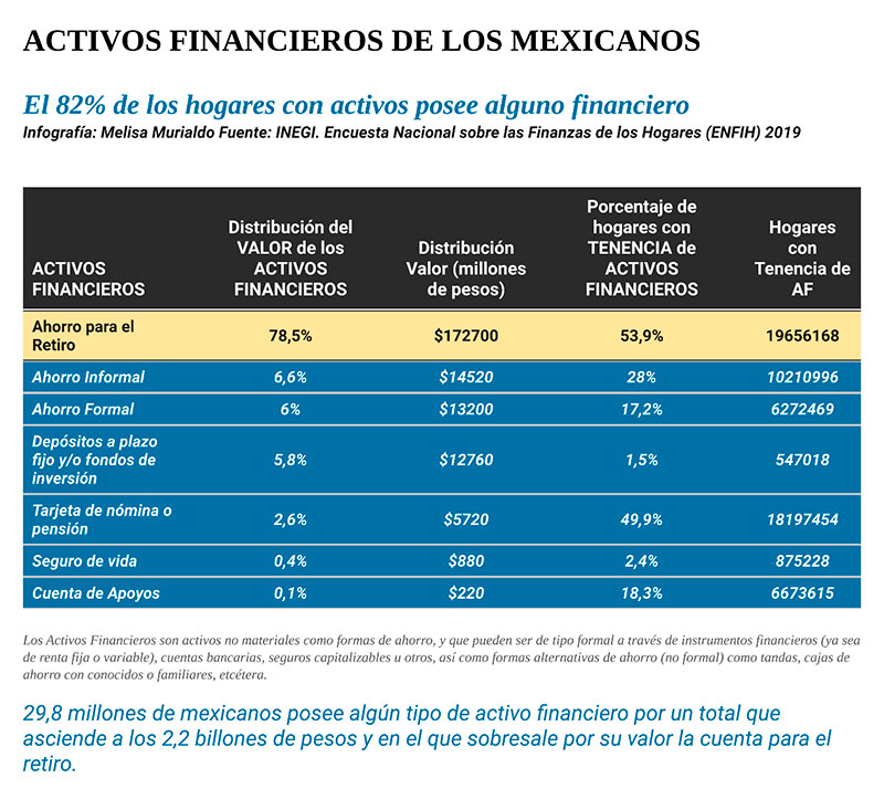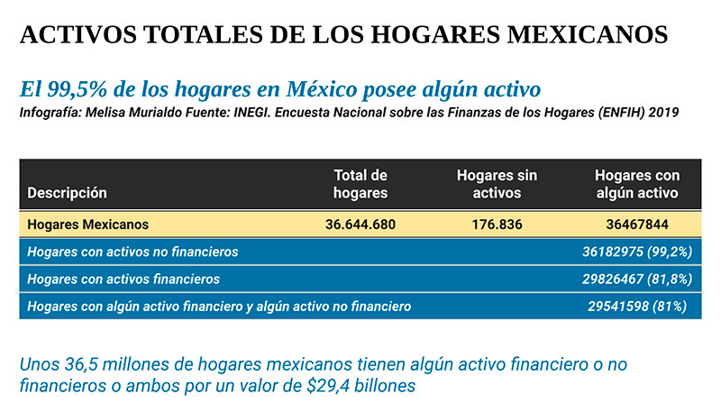 De acuerdo a datos brindados por INEGI, 36.5 millones de hogares mexicanos tienen algún activo financiero o no financieros o ambos por un valor de $29,4 billones.