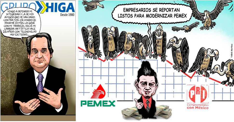 Lamento decirlo,¡No me equivoque!.El “nuevo Pri” salio peor que “el viejo Pri”….¿Como podría ser diferente,si son los mismos que atracaron el EdoMex,con toda impunidad?.,,Si,son los que,en complicidad con HIGA,OHL,Hank,y otras constructoras(?)hicieron del estado un botin de enormes cantidades de dinero que pasó de las arcas del estado,a las cuentas bancarias(¿Panama papers?)de los dueños de las constructoras y los “sevidores públicos” que las contrataron para simular los cacareados avances en “infeschtuchtura” copetona.