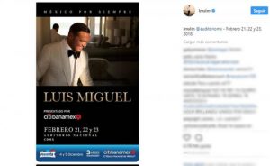 CIUDAD DE MÉXICO, 27 de noviembre (AlMomentoMX).- Luis Miguel comenzará su gira ‘México por Siempre’ el Auditorio Nacional de la Ciudad de México, los días 21, 22 y 23 de febrero, para luego recorrer el resto del país.