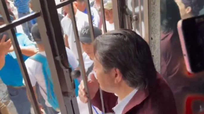 Sin embargo, los manifestantes se negaron a permitir la salida y continuaron con sus consignas contra el dirigente morenista.