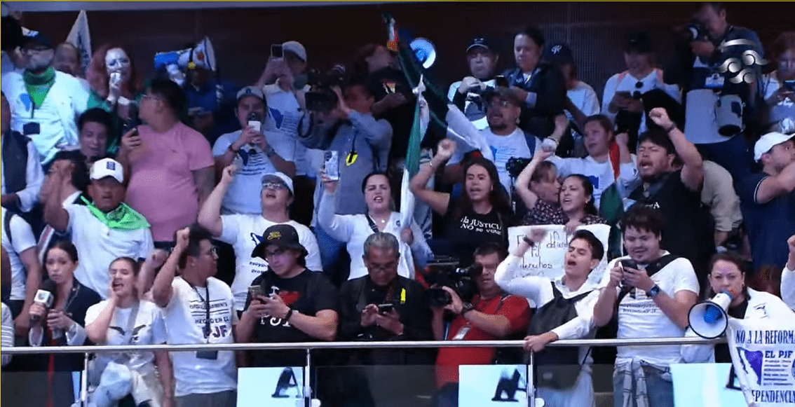 Un grupo de manifestantes interrumpió la sesión del Senado de la República en medio de una acalorada discusión sobre la reforma judicial.