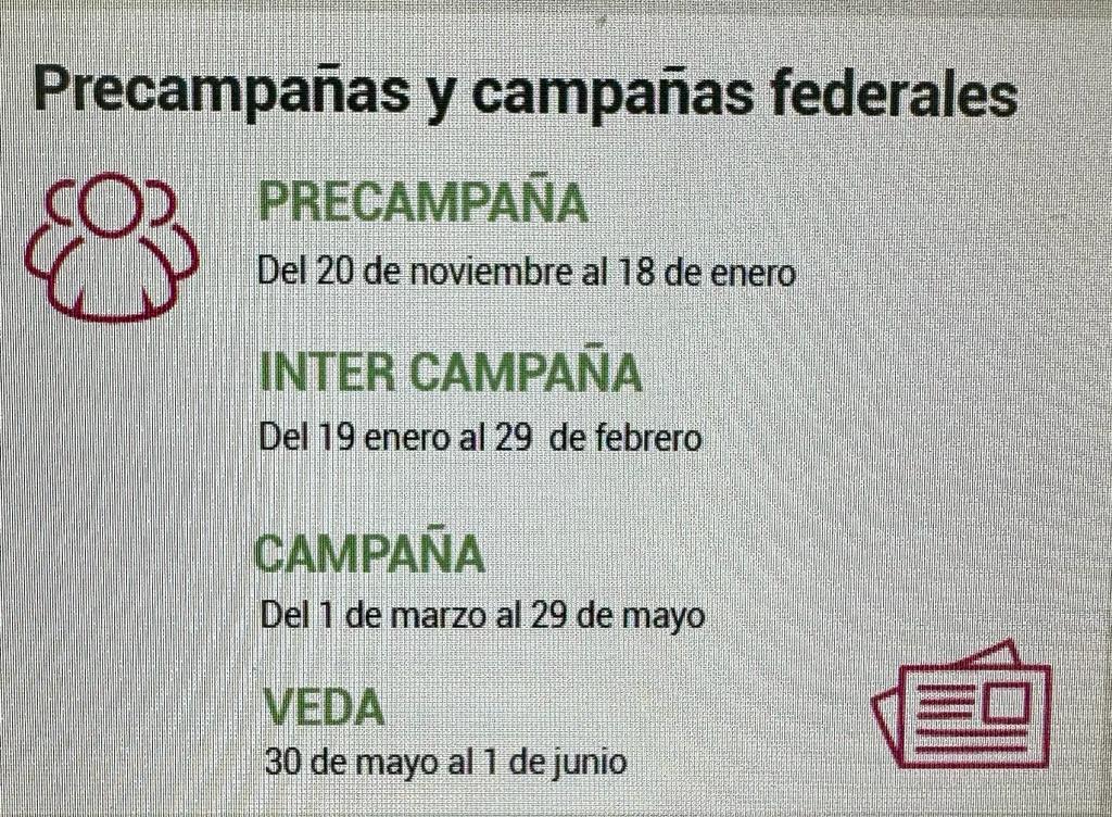 De acuerdo al calendario electoral federal, de la precampaña que inició el 20 de noviembre, sigue la «intercampaña» del 19 de enero al 29 de febrero.