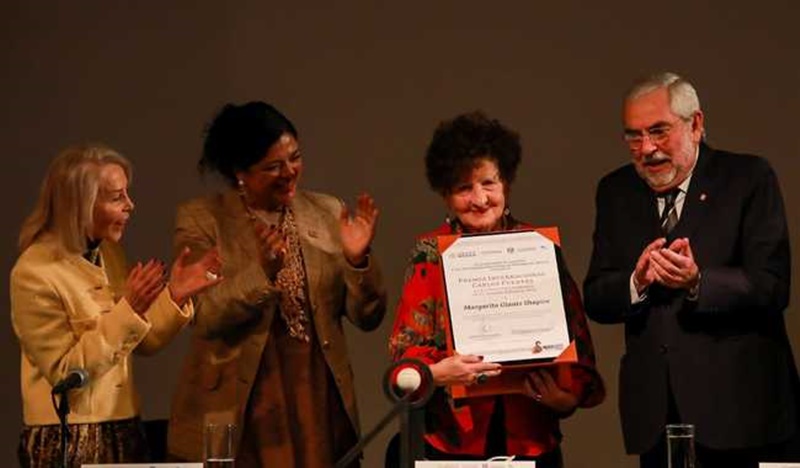 Redacción MX Político.- La escritora mexicana Margo Glantz (1930) recibió esta mañana el Premio Internacional Carlos Fuentes a la Creación Literaria en el Idioma Español 2022 que otorgan la Secretaría de Cultura federal y la Universidad Nacional Autónoma de México (UNAM).