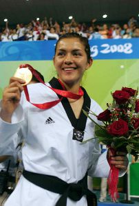En Beijing 2008 consiguió oro y se convirtió en la segunda mujer mexicana en ganar medalla de oro en Juegos Olímpicos, en Sydney 2000 lo logró Soraya Jiménez.