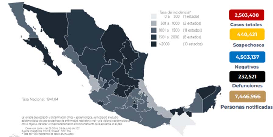 La Secretaría de Salud confirma 232 mil 521 fallecimientos por Covid-19 en México