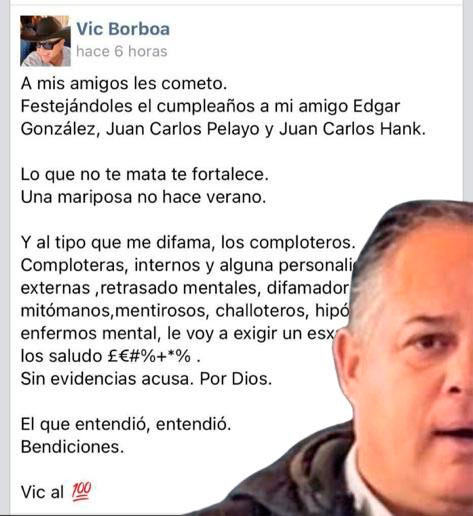 Lunes 26 de junio del 2023.- Indignadísimo porque lo corrieron de COEPRIS-Tijuana al comprobarle sus raterías, el impresentable Víctor Borboa Fierro recurrió a los insultos en redes sociales para intentar ventilar su frustración.