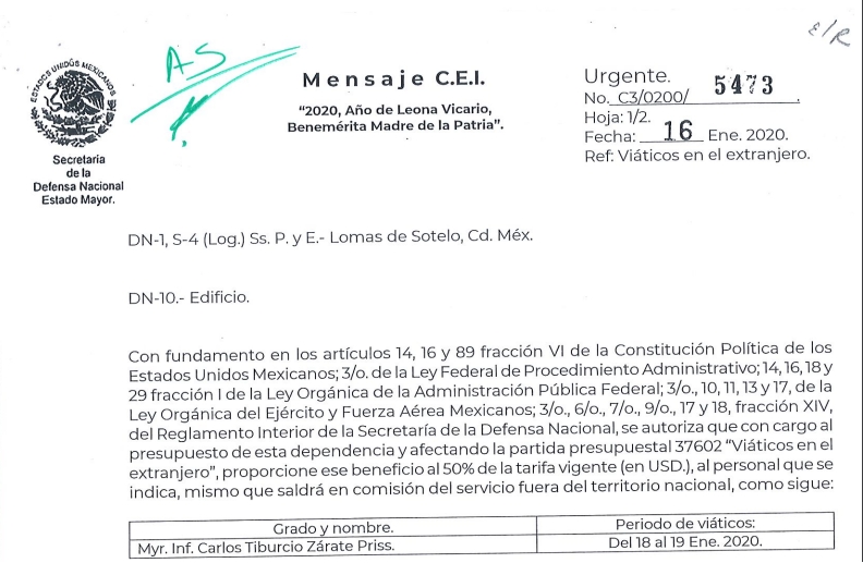 El 8 de septiembre de 2020, fue enviado al secretario particular del titular de la Sedena una petición para comisionar a seis militares en apoyo a la esposa del presidente, quien el mes siguiente viajaría a Francia, Italia, Alemania y Polonia, “a fin de llevar a cabo actividades oficiales y privadas”.