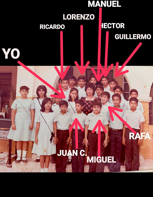 Luego de unos días puse en el grupo dos fotos y me parece que a todos se nos reavivaron los recuerdos. De inmediato pusieron algunos nombres, además de los ya citados: Rafael, Ricardo, Olivia, Guillermo, Martín, Genaro, Lorena, Claudia Isis, Efrén, Raymundo, Eugenio, Jesús. En la foto de sexto grado, la maestra María de los Ángeles Edith Cruz López. “Muy bonita foto y grandes recuerdos”, escribió el profesor Gaspar Bravo.