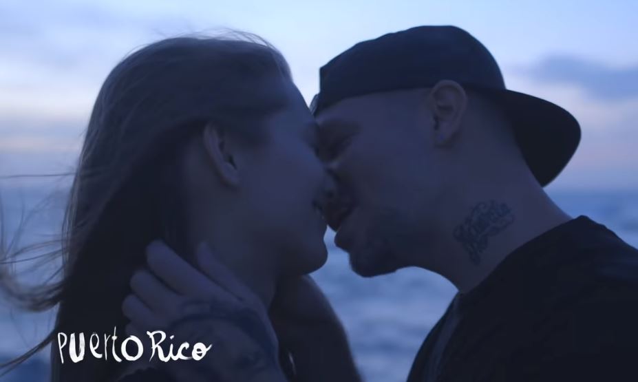 El primer beso lo protagonizan el propio Residente y su novia la modelo polaca Kasia Mónica Marciniak, frente a las playas de Puerto Rico.
