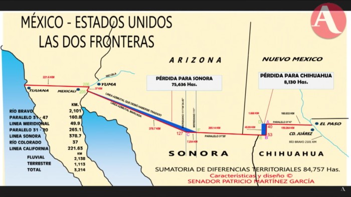 Martínez García solicitó al Senado que impulse acciones para recuperar más de 436 .41 kilómetros de línea en la frontera con Estados Unidos y que lleven el caso a tribunales internacionales. De igual forma, dio a conocer que podrían detener la construcción del muro fronterizo de Donald Trump.