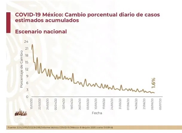 José Luis Alomía, director General de Epidemiología, apuntó que en comparación con el 7 de julio, este día se presentó un aumento del 1.6 por ciento en el número de casos nuevos.
