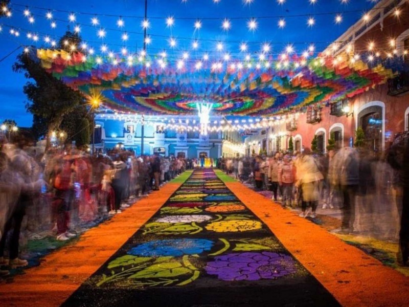 Las calles de Huamantla se convirtieron en lienzos para que artesanos expresaran su arte como parte de las festividades en honor a la Virgen de la Caridad del 14 y 15 de agosto, conocidas también como las “Noches que nadie duerme”.