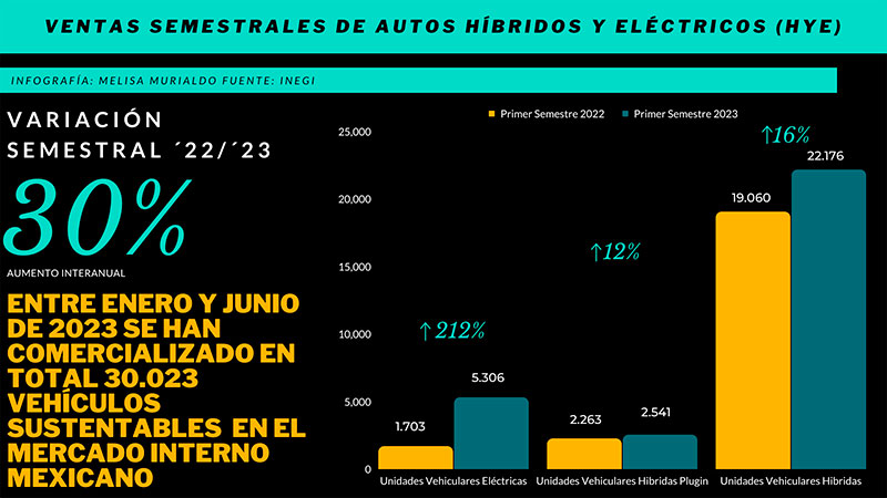 Ahora, si nos centramos en el 2023, la Asociación Mexicana de la Industria Automotriz (AMIA), con base en la última información publicada por el Instituto Nacional de Estadística y Geografía (INEGI), informó que en junio la venta de vehículos híbridos y eléctricos fue de 6.785 unidades.