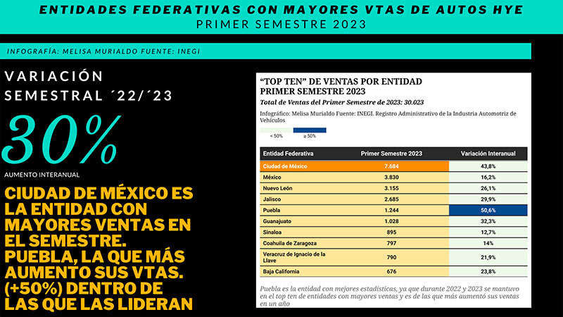 ENTIDADES FEDERATIVAS CON MAYORES VENTAS DE AUTOS SUSTENTABLES EN EL PRIMER SEMESTRE 2023
