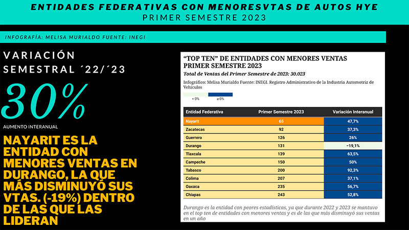 ENTIDADES FEDERATIVAS CON MENORES VENTAS DE AUTOS SUSTENTABLES EN EL PRIMER SEMESTRE 2023