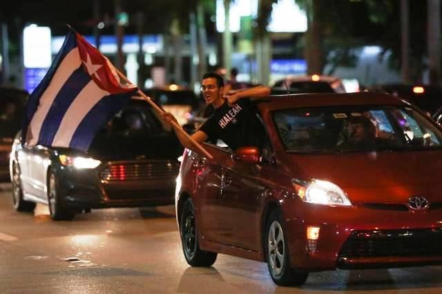 De acuerdo con el diario El Nuevo Herald, apenas se supo la noticia de su fallecimiento, los residentes se lanzaron a las calles eufóricos a expresar su alegría por un hecho largamente esperado a 90 millas de la isla, sumándose así a la celebración que se apoderó de la mayoría de las zonas del condado Miami-Dade en la madrugada del sábado.