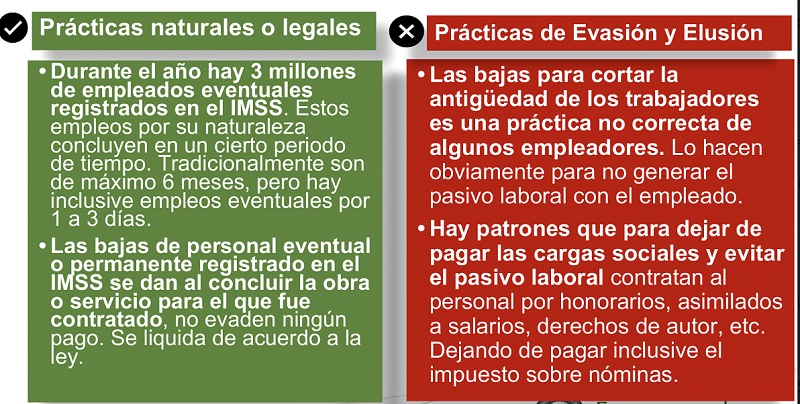 “Es indispensable combatir las malas prácticas. No permitir que se hagan cortes de antigüedad, es decir, que se use el esquema de trabajo eventual o temporal para que el empleado no genere antigüedad. También hay que evitar la evasión y elusión de responsabilidades patronales impidiendo que se contrate al trabajador a través de esquemas que simulan relaciones laborales como trabajadores independientes”, destacó el directivo.
