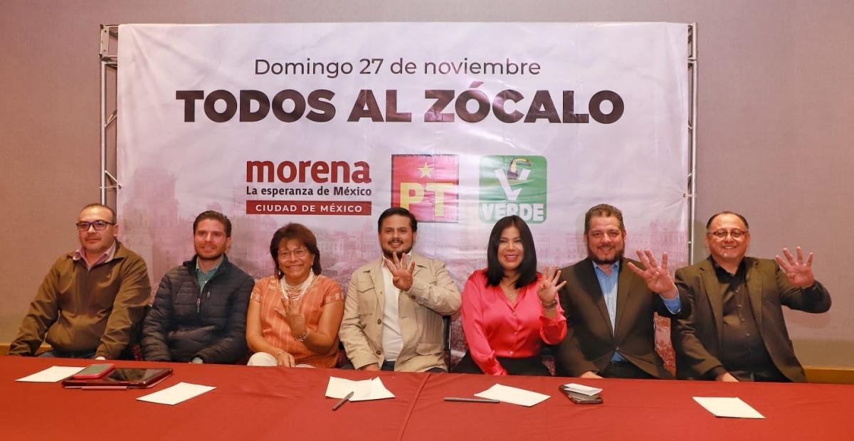 En conferencia de prensa, el dirigente de Morena en la Ciudad de México, Sebastián Ramírez Mendoza, afirmó que los militantes de esos tres partidos se reunirán desde las nueve de la mañana el próximo domingo e indicó que “bajita la mano” juntarán 100 mil personas o hasta 130 mil.