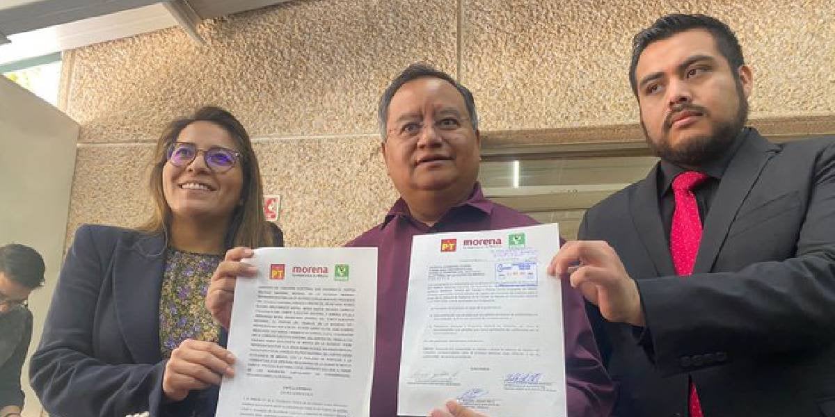 Eduardo Santillán, Dafne Medina Martínez y Benjamín Jiménez Melo, representantes de Morena, PVEM y PT respectivamente, presentaron los documentos de este convenio de coalición al Instituto Electoral de la Ciudad de México (IECM), que deberá revisar y aprobar.