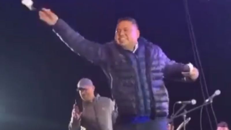 En redes sociales se publicó el video del primer día del evento, donde se ve al alcalde aventando billetes a las personas que estaban frente al escenario. “Vamos a lanzar bolo otra vez”, dijo.