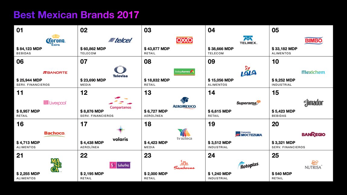 Corona, Telcel y Oxxo, las marcas mexicanas más valiosas del 2017