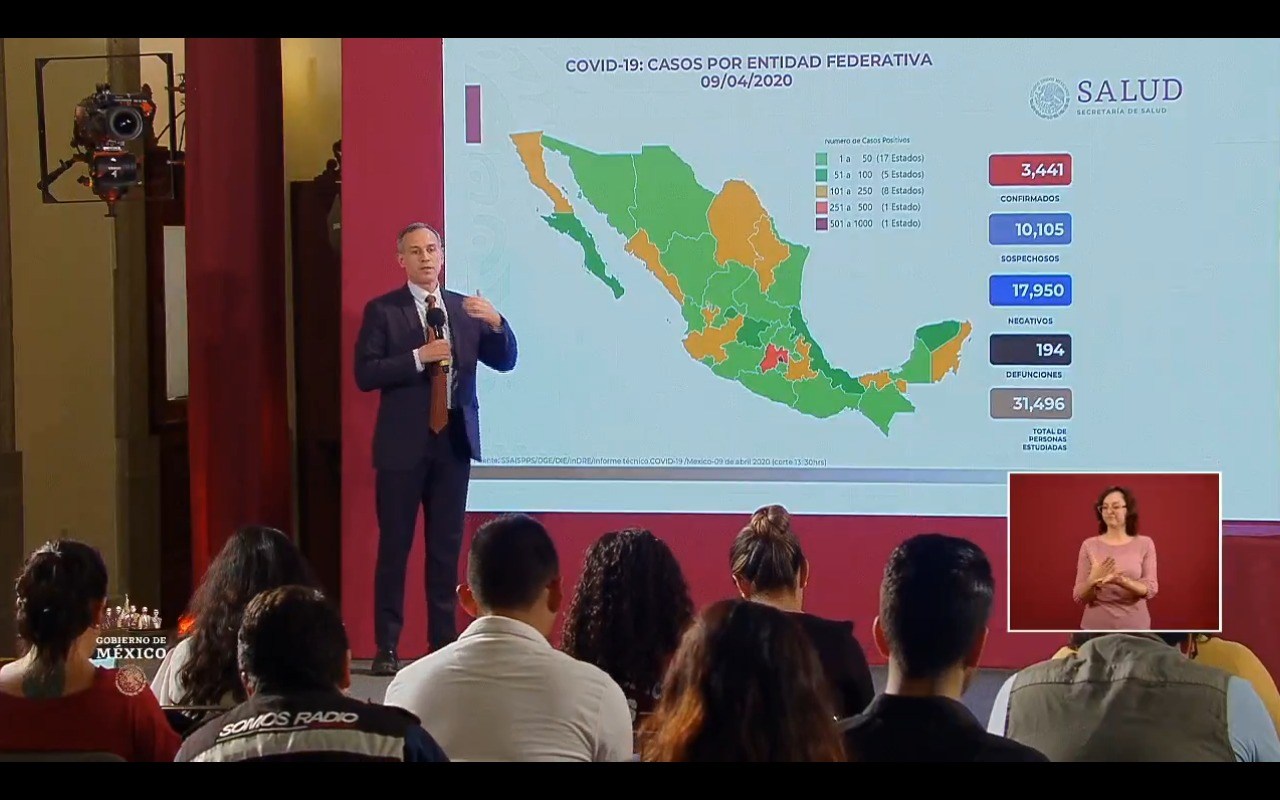Actualización este jueves: 3, 441 confirmados y 194 defunciones por Covid19 en México, incluyendo a dos mujeres embarazadas. Hay que tener especial cuidado con ellas, advierte Hugo López Gatell. También explica que en 2009 la mortalidad materna se elevó drásticamente. pic.twitter.com/yxqRzklTPK