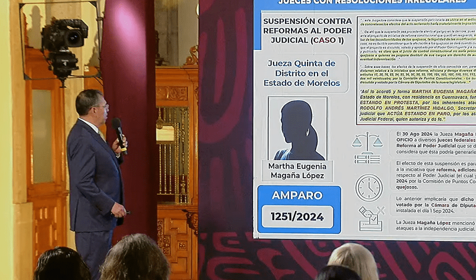 El subsecretario explicó que, el pasado 30 de agosto de 2024, la jueza Magaña López otorgó una suspensión de oficio a varios jueces federales que promovieron un amparo contra la reforma al Poder Judicial, argumentando que esta podría causarles «un daño de imposible reparación».