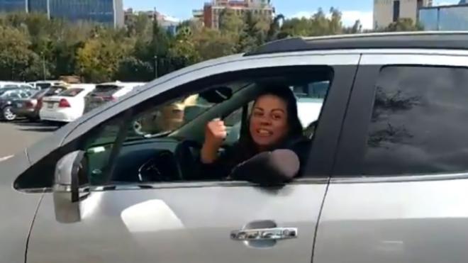 Cuando queriendo imponerse arbitrariamente y “meterse a la fila” sin derecho, fue grabada por un hombre que se sintió agraviado por el acto abusivo de la dama, a bordo de un vehículo color gris, modelo reciente, tipo camioneta de lujo.