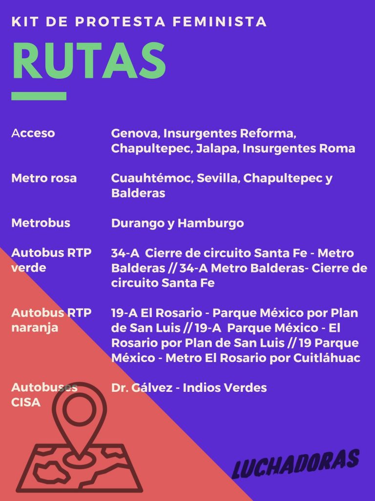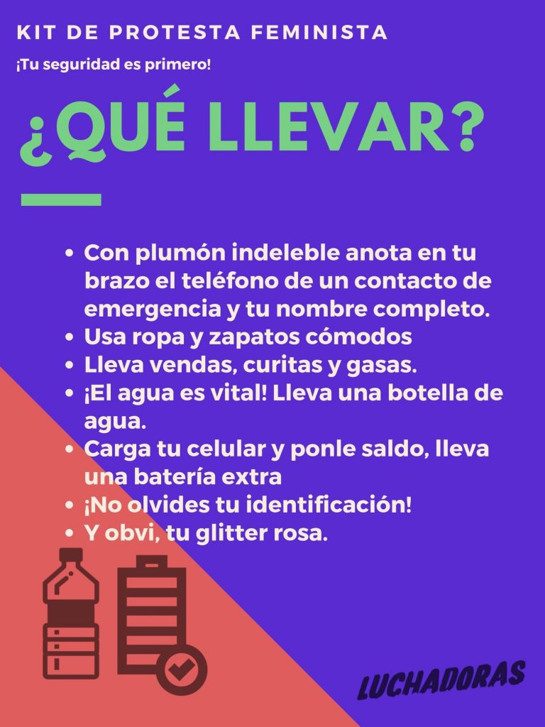 De acuerdo con su página de Facebook, 7 mil 371 personas asistirán a la manifestación, por lo que recomendaron un kit de “protesta feminista”, elaborado por el colectivo feminista Luchadoras, integrado por la ropa que deben vestir y la preparación de rutas de escape.