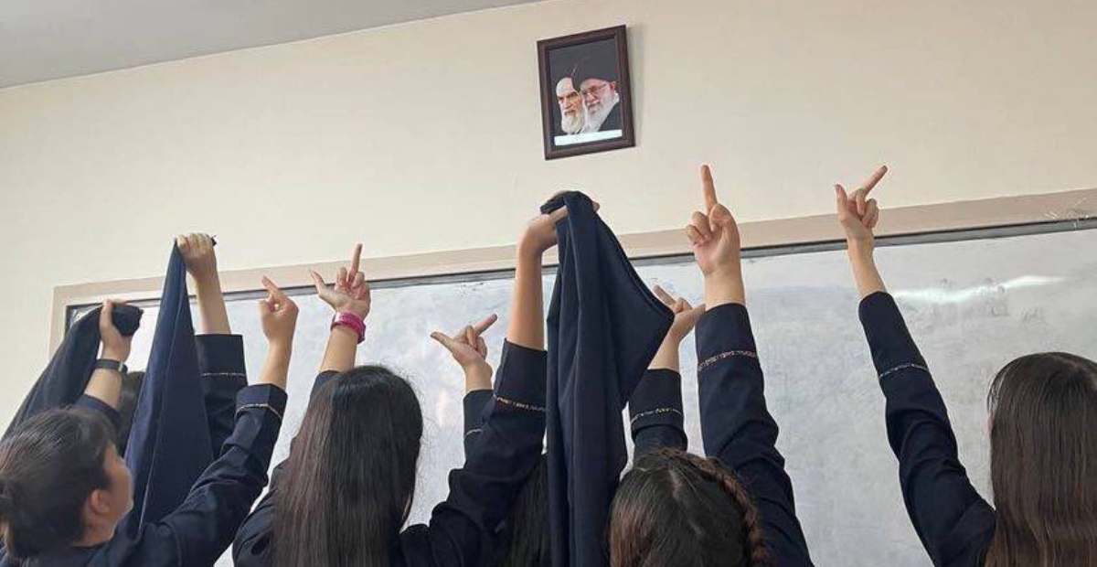 A través de sus redes sociales, el activista por los derechos humanos Agustín Antonetti, difundió videos e imágenes en los que se ve a mujeres en las protestas al interior de los planteles educativos, que como parte de las manifestaciones retiraron fotografías de los líderes del régimen iraní para poner carteles en los que se lee el lema “Mujer, Vida y Libertad”.
