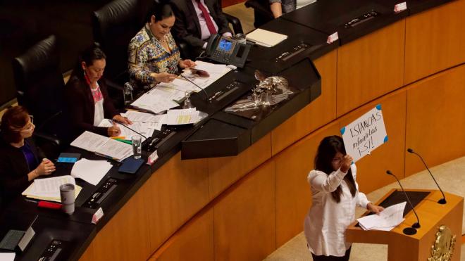 Las manifestantes negaron la retención de autobuses como parte de su exigencia, luego de que extraoficialmente se reportó que al menos cuatro unidades de las empresas ADO, AU y Futura fueron tomadas.