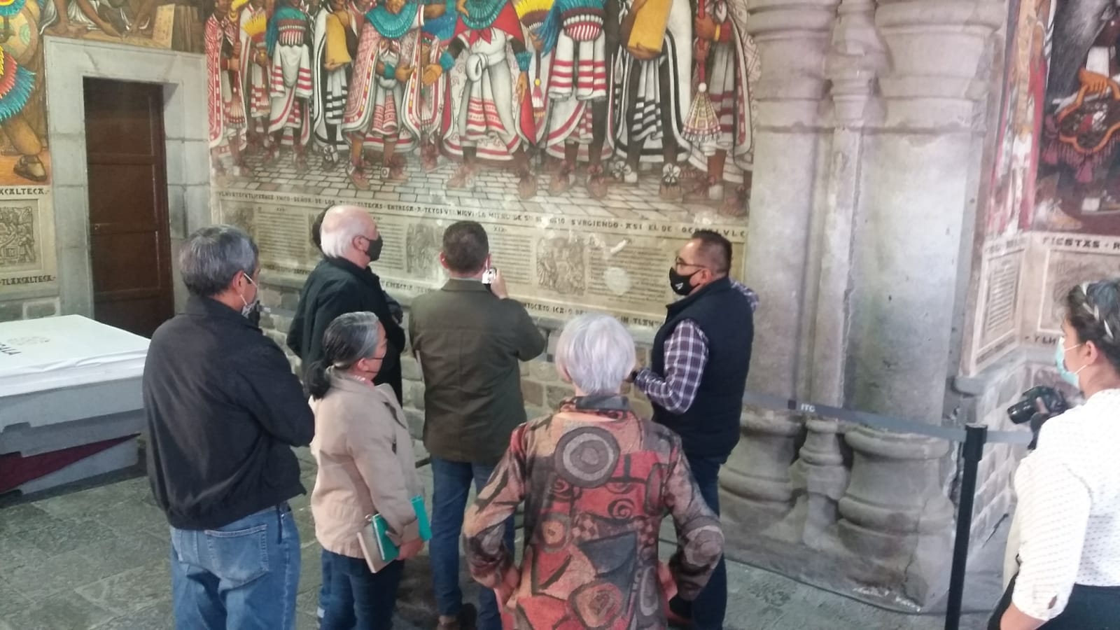 El pasado 14 de diciembre, especialistas de la Subdirección General del Patrimonio Artístico Inmueble realizaron una visita técnica al inmueble. Ahí, los profesionales del Centro Nacional de Conservación y Registro del Patrimonio Artístico Mueble (Cencropam) acordaron las primeras acciones de atención integral al mural La historia de Tlaxcala y el Siglo de oro, realizado en diversas etapas de 1956 al 2000. En el escrutinio también participaron expertos de la Dirección de Arquitectura y Conservación del Patrimonio Artístico Inmueble (DACPAI)