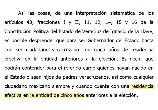 Así que lo que se realizará mañana será netamente darle certeza constitucional a un tema analizado y discutido ya por el máximo Tribunal Electoral del país, para con ello, garantizar a cualquier persona, no nacida en Veracruz, pero con residencia superior a 5 años, poder acceder al concurso de la democracia en representación de su lugar de vecindad.