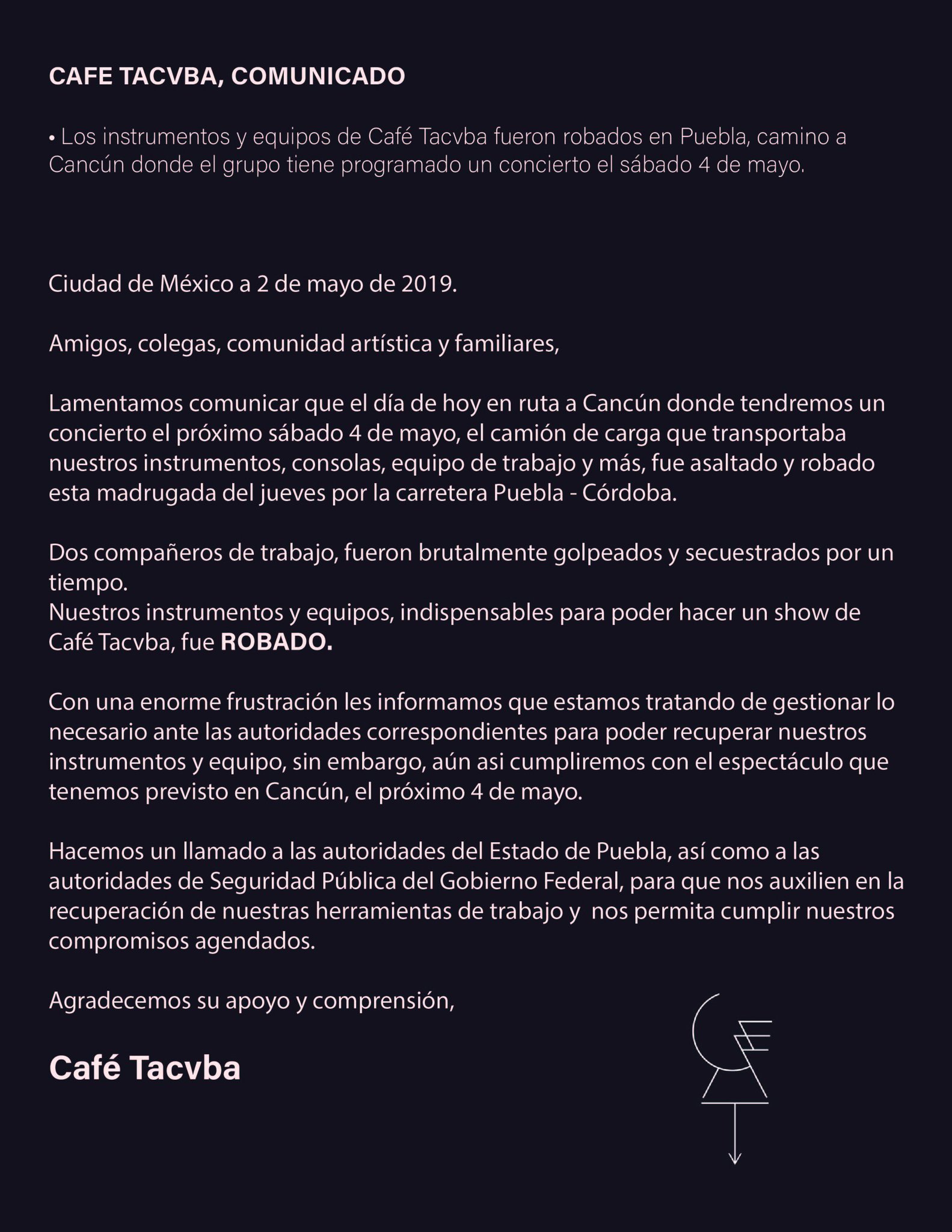 Usan equipo robado de Café Tacvba para tocar en fiestas del crimen organizado