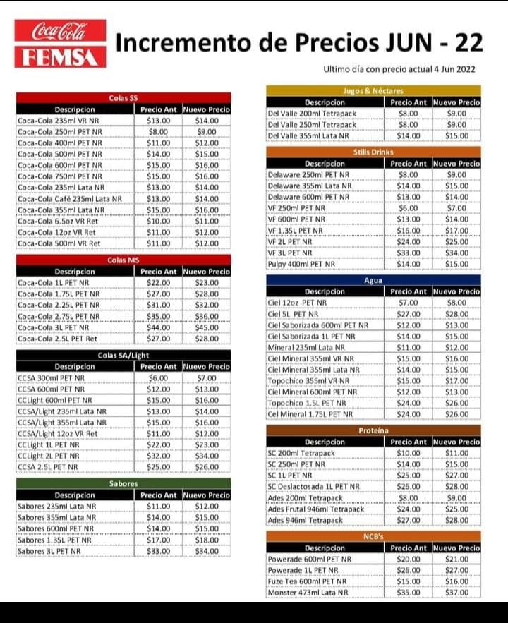 Coca-Cola Femsa aumentará precios de refrescos, jugos y otras bebidas