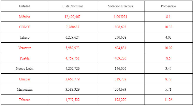 Ya con los resultados de la Consulta Popular por entidad federativa, se observa que hubo una operación para movilizar a los votantes en las demarcaciones controladas por MORENA, pero ni con toda la disposición del aparato lograron una participación masiva.