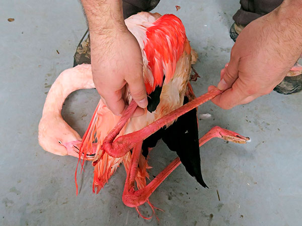 Las autoridades del zoológico de Illinois confirmaron que el flamingo quedó fuertemente lesionado en una de sus patas, la roca rompió la pierna por lo que decidieron dormirlo para evitar que siguiera sufriendo, dijeron en entrevista para la cadena de noticias CNN.