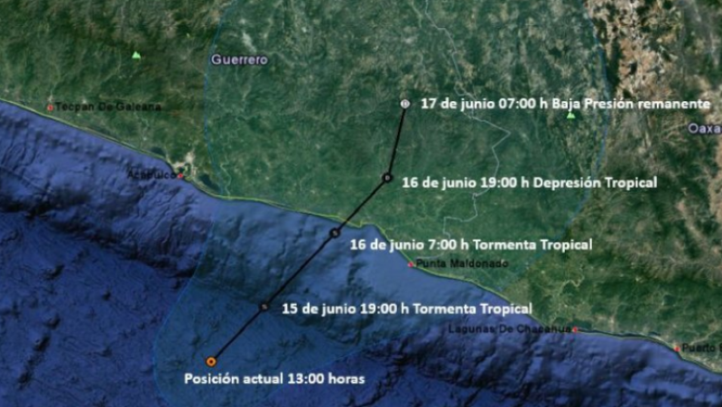 CIUDAD DE MÉXICO, 15 de junio (AlMomentoMX).—  El Servicio Meteorológico Nacional informó sobre la formación de la tormenta tropical Carlotta; se formó a 95 kilómetros al sur-sureste de Acapulco y a 95 kilómetros al oeste-suroeste de Punta Maldonado, en Guerrero.